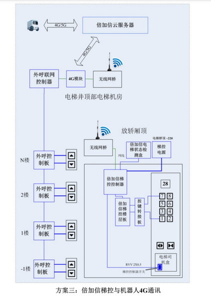 應(yīng)“人工智能”服務(wù)機(jī)器人的發(fā)展趨勢(shì),在垂直電梯管理方面,也陸續(xù)推出了一系列針對(duì)機(jī)器人乘梯通行的解決方案。倍-加-信-科-技采用先進(jìn)的物聯(lián)網(wǎng)和云計(jì)算技術(shù),通過WIFI、4G等無線方式實(shí)現(xiàn)對(duì)接,實(shí)現(xiàn)機(jī)器人自主乘梯。